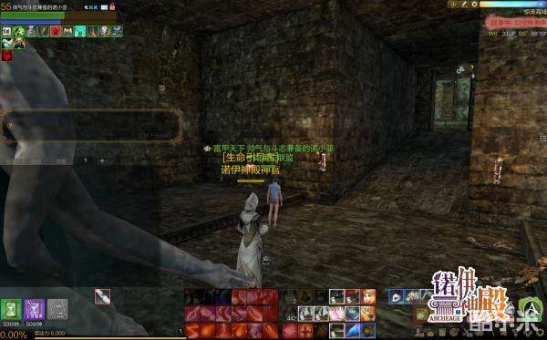 好吧,我确实憋死在水底了,小腿游得不够快,无奈只能选择复活了。 在咆哮岛复活之后由于我们不是海盗势力所以都会复活到监狱!没错,就是监狱!有什么事比刚死一次又被困住更惨呢?不过不用怕,这里虽然门是关着的,我们可以想办法打开!大家仔细观察在房间左侧房顶角上大家可以看到藤蔓吧,要跳跃起来然后马上摁F,这样就可以爬到藤蔓上了,上去之后就可以找到打开监狱门的机关。不过还是要提醒大家小心,咆哮岛到处存在的巡逻兵可不是吃素的,一个不留意又回送你回来!