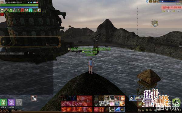 从监狱出来之后我们来到海滩后面的山坡上,在这里可以清楚看到整个咆哮岛的地形,就像处在一个火山口中一样,四周围绕着高低不等的山坡。正前方就是摩耳普斯的海盗船,高高耸立的海盗船主桅杆有木有一种很想站上去的感觉?不过桅杆虽然不容易站上去,摩耳甫斯的瞭望台我们还是可以过去撩拨一下的,毕竟我们现在所处的位置高度肯定没问题。