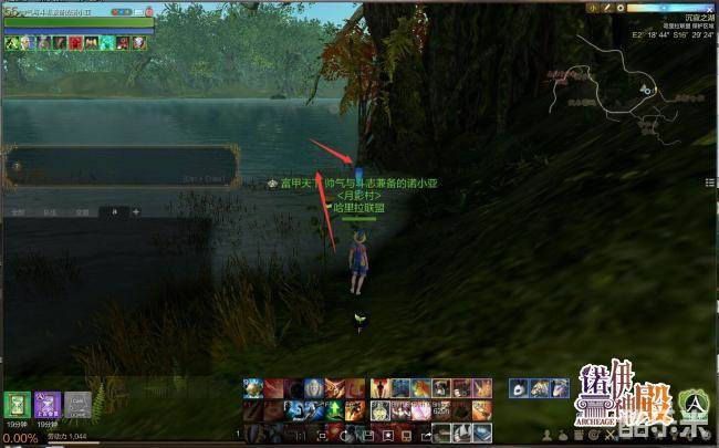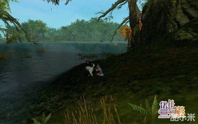 初到沉寂之湖湖边我们看到的一篇祥和宁静的景象。甚至湖边还有一只巨兔!为什么叫巨兔?你看看就知道了......我蹲在地上竟然和兔子差不多大。话说大兔子,你丫是迷路了吗?还是此地的土地公呢?这兔子不理人,所以就不再理他,我们还是直接下水吧!