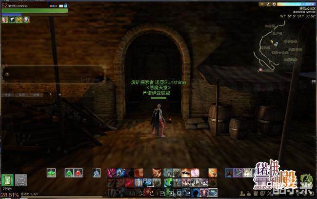 在这里,左侧是一个被栅栏隔出来的空间,墙壁上还有火把,墙上的火把可以点亮并制作成拿在手上照明20分钟的火炬,(装备火炬然后按Z拔出武器就可以用火炬照亮周围了!)前面是一个门,进去之后是另外一个充满水的房间,水很深,但是水底貌似没办法游出去,所以转了一圈又回来了。在房间右侧是一个棚子,地上散落着一些箱子。木桶,这里应该是当初建设下水道工人的集散点之一吧!