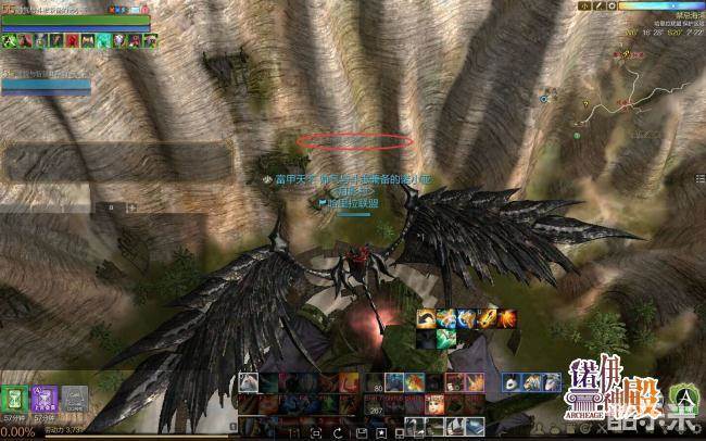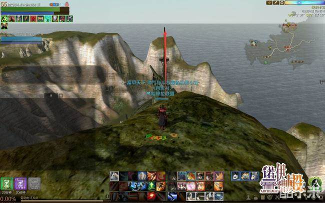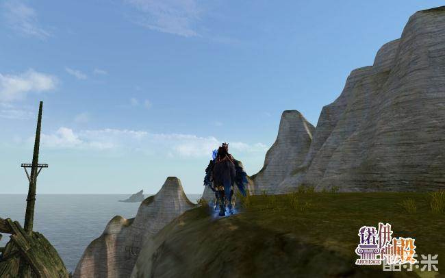 来到山顶之后,就可以看到巨大的沉船桅杆就耸立在我们不远处,在山顶起跳高度肯定是没有问题的,所以我们并不需要再使用滑翔翼的跃起技能,只要起跳之后加速飞过去就行了,在到达之前提前减速,然后盘旋降落,尽量要准确的落向桅杆顶部,不要担心这里虽然地方很小,但是还是可以站的下人的。