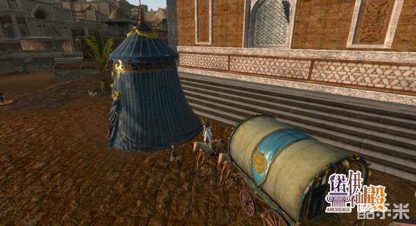 剧场的环形观演台分上下两层,第一层是观众席。但不知为何,在这观众席的最后面,居然放着一个海盗的骨灰盒。骨灰盒旁边有两个奥斯特拉近卫兵把守着,如果是敌对势力的角色这两个近卫兵是会主动攻击的。