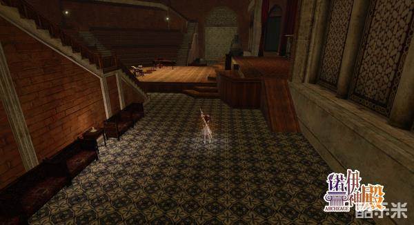 在舞台的两个侧面各有一个入口。深邃的入口不知通往哪里,难道是......化妆间?在好奇心的驱使下马利走了进去。