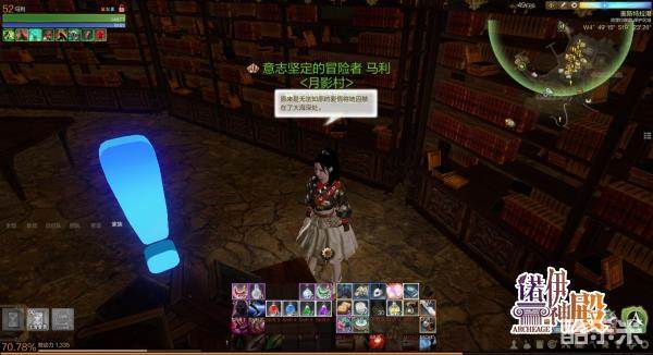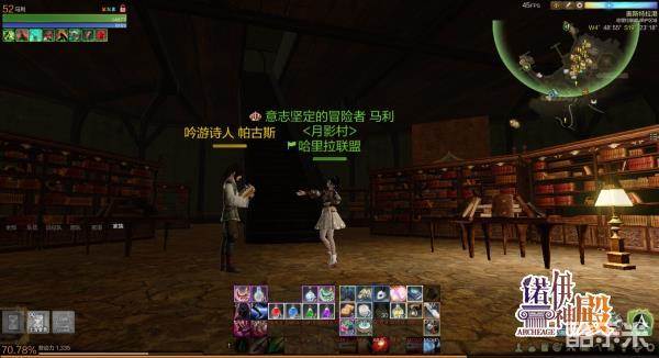 走到下面并没有发生任何危险事件,我们来到了一个类似图书馆的地下室,中间站着一个叫帕古斯的吟游诗人。不知道这位吟游诗人是不是也来读书的呢?