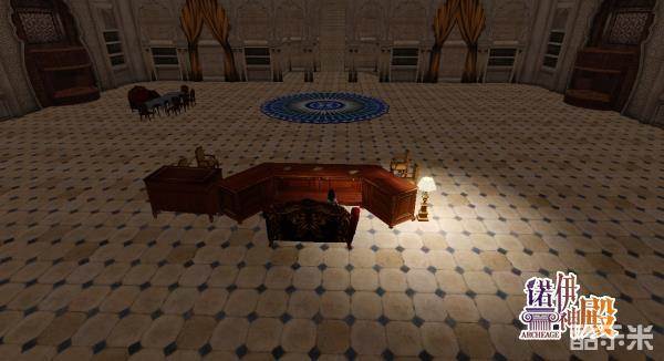 走下来之后到了一个很像奥港英雄大厅的地方,这已经是最底层了。几张桌子放在大厅中间,办公桌旁边的台灯孤独的亮着,为这漆黑的地下带来一点光亮。这里的确是一个用来捉迷藏的好地方,如果躲在这里几乎不会有人找到吧。