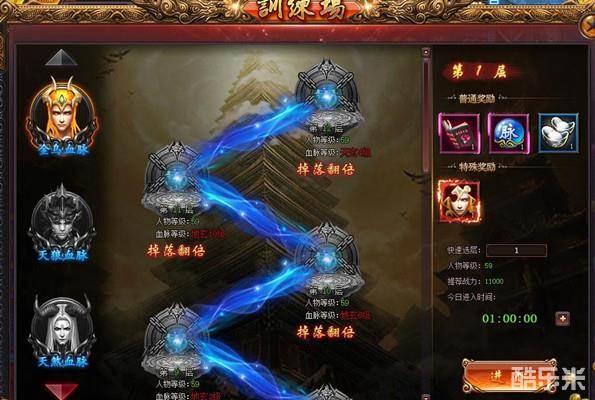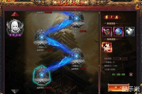 每个血脉训练场分为12层,每一层进入都有条件,要求玩家达到指定的血脉等级与人物等级才可以进入挑战。