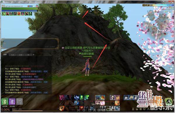 来到小山脚下的草地上,先选好上去的步骤。我们可以先按照箭头指示方向快速奔跑到无法向上为止然后打开滑翔翼利用滑翔翼滑行到第一个箭头所指的树旁,第一个坡看似不陡但是单单依靠双脚还是上不了的。来到这里就好说了,跃起的同时使用滑翔翼来到第二个箭头指示的位置,到了这里就会发现里面葱葱郁郁的全是树木,迎着树木向前走几步会来到山头之下,这里比较简单,无论从前中后哪个方向都是可以比较简单的使用滑翔翼飞上去的。