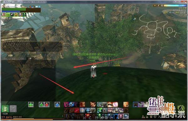 大家知道要登山,选好路线是非常重要的,这会决定你后面一路是否顺利!(我是有发言权的 T T,刚开始选择左侧山脊登山失败!摔死N次后感觉这边开始难度太大,抱着对各位观众老爷负责任的态度,诺亚尝试多次之后建议大家从右侧山脊开始登顶)。首先我们传送到格威尔森林的记忆之地,可以看到虽然左右两侧都可以起爬,但是从右侧开始后面路途会相对简单(并且安全!)一些,按照图中箭头所示上来,我们就正式开始登顶之旅了。
