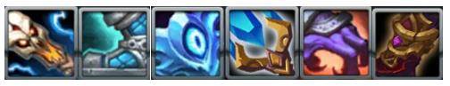 解析:由于寒冬之心自身被动护甲的存在,技能之后可以近身平A换血,搭配巫毒法杖能够打出更多的伤害,出门装选择蓝晶石及荣耀法典能够更快合成巫毒法杖。