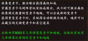 玩家可以在世界BOSS战或者玩家对战中获取变身卡,得到的魂魄也是可以用于变身卡合成的哦。