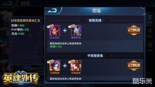 当安魂血使遇上勾魂鬼姬,同为平安京和风系列的2套时装,将激发恶鬼之间的斗志,在英魂竞技场中发挥增伤的特殊效果。若是让暴君萨特遇上红炎双刃的话,则会唤起地狱与暗夜潜藏的意识,激发出增强全队防御的强化加成。美观又实用的时装,几乎是所有召唤师的追求。
