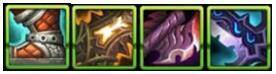 分析:暗影舞者是名近战战士,而且除大招外没有控制技能,非常容易成为被围攻的对象,而天舞本身有不错的攻击加成,所以装备建议选用加攻速和堆血量输出流,增加自身的生存能力,众神之力可以满足天舞这一需求,破甲战斧在提高天舞攻击力的同时,可以减少天舞技能CD,众神之力和破甲战斧的搭配,可以避免遇到没秒掉人反而被秒的尴尬情况,另外加一把吸血刀也是极好的,保证输出的同时还可以提升续航能力。
