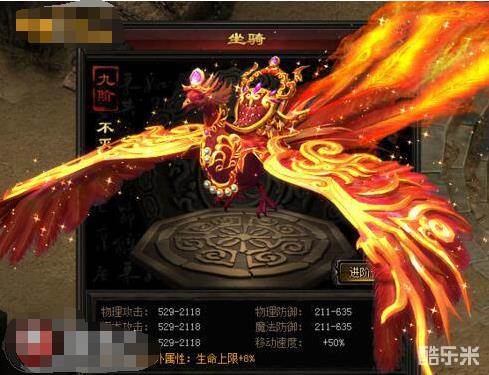 这些坐骑不仅拥有炫酷的外表,还有各种属性的加成。比如9阶的不灭凤凰,不仅可以拥有特殊属性加成“生命加成”,还可以使攻击增加462-1848点,防御可增加184-554点,移动速度可增加50%。