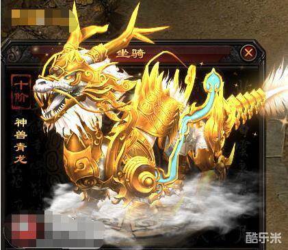 在开天战神BT中有一个坐骑系统,这里的坐骑共分为十阶,每阶有十级。这十阶坐骑分别有,一阶的卢、二阶闪电豹、三阶银狼、四阶震天虎、五阶灵兽狻猊、六阶凶兽穷奇、七阶金翅大鹏、八阶圣火麒麟、九阶不灭凤凰以及十阶神兽青龙。
