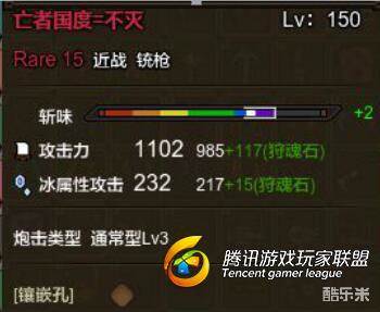 炮击类型:通常型LV3,炮击等级不是最高,物理面板差15点到1000,斩味斩差,自带很短的蓝斩。优势在于多217的冰属性攻击,基础总值为1203,狩猎有比较弱冰部位的怪物时,伤害最好,炮击伤害也不错,而且自带一孔,配装比无孔武器有优势。