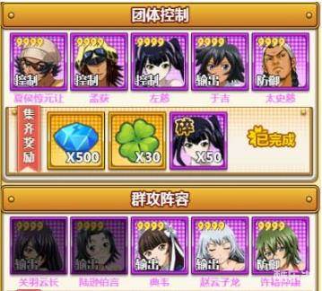 群攻阵容,关羽,陆逊,典韦,赵云,许褚。4输出1防御,妥妥的阵容。应该挺好用的。