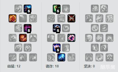 12-18-0的标准法师天赋,这样的点法同样适用于上单,诡诈系点出雷霆和刺客,凶猛系点出“新鲜血液”或更换为“盛宴”皆可。