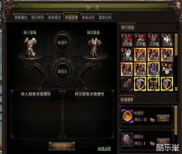 转魂功能可以对已经鉴定装备的灵魂属性进行删除和转移操作。你可以将不想要的属性删除,将其他装备上想要的灵魂属性转移到要穿戴的装备上。