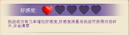 点进去就可以挑战了,好感度最多5心。每挑战成功一次增加1心,最多5心。5心后下一次挑战双倍碎片,并且清零好感度。简单的说就是每打5局,第六局出两个碎片。