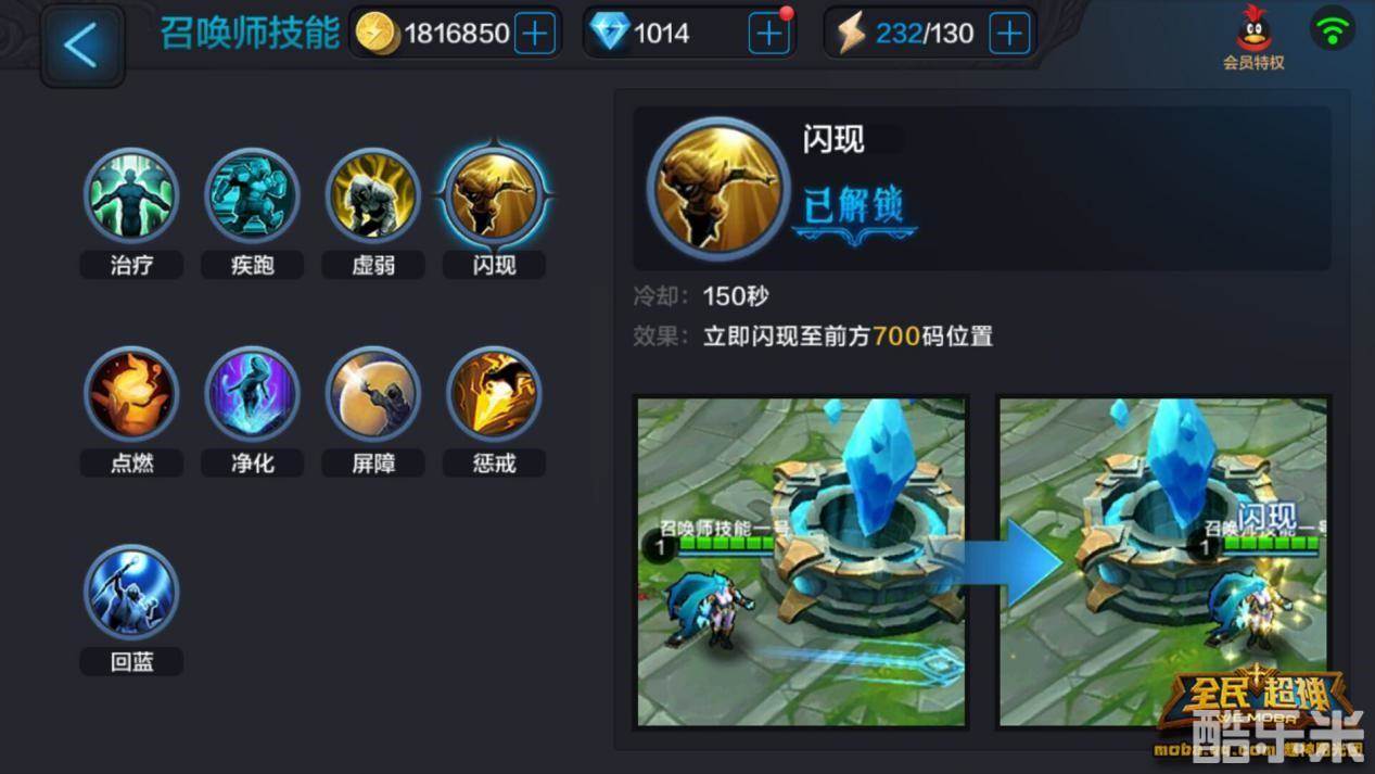 疾跑:疾跑和闪现有异曲同工的效果,唯一的差别就是闪现是定向闪现,必须是特定的方向,而疾跑可以控制方向,无论敌方是怎样的逃跑路线,都可以进行追踪,所以在我看来,闪现是逃跑神技,而疾跑是追踪神技。