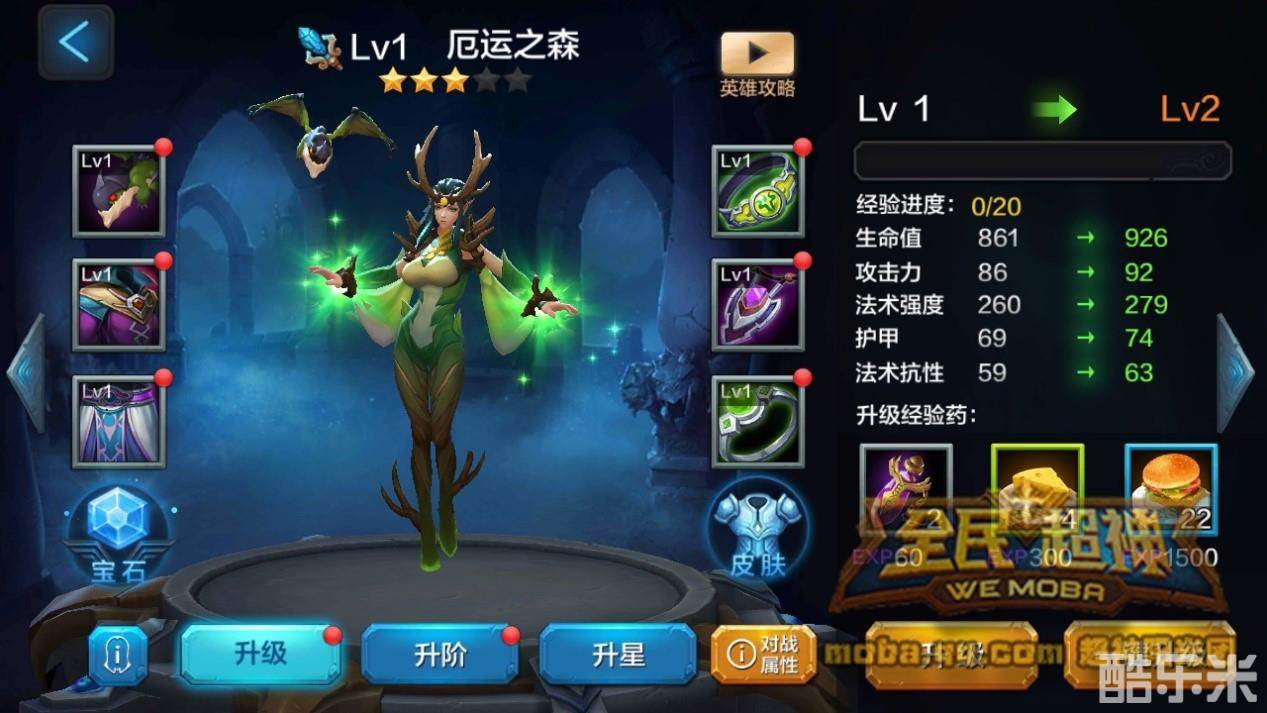 英雄升级,厄运之森升级方式可以通过参加闯关模式,直接获得经验升级;或者使用经验药升级。而且现在商城里出了方便大家直接给英雄升级到60级的礼包,也很方便哦。