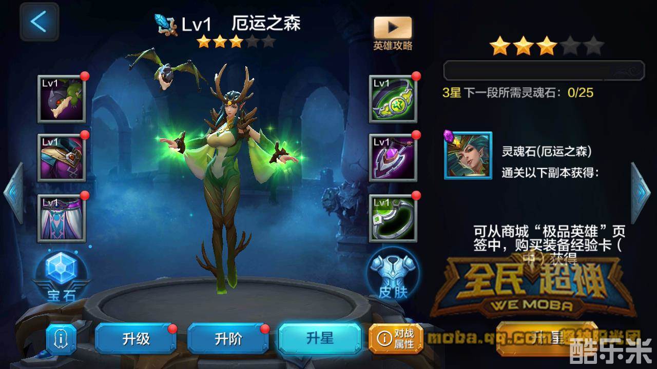 厄运之森初始为3星,想要升星则需要不同数量的灵魂石。现阶段由于厄运之森的灵魂石只能通过商城购买,或者靠人品爆发通过抽奖获得,所以想要升到5星还是有一定的难度的,不过相信小伙伴们一直努力的话,一定可以升到5星的。