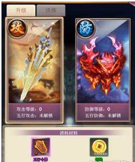 在这里的界面就是五行界面了,消耗五行令牌就可以将自己的攻击或者防御属性进行升级增幅啦。小伙伴们赶紧去打五行塔吧。不过难度可不是一般人可以打得过的哟~