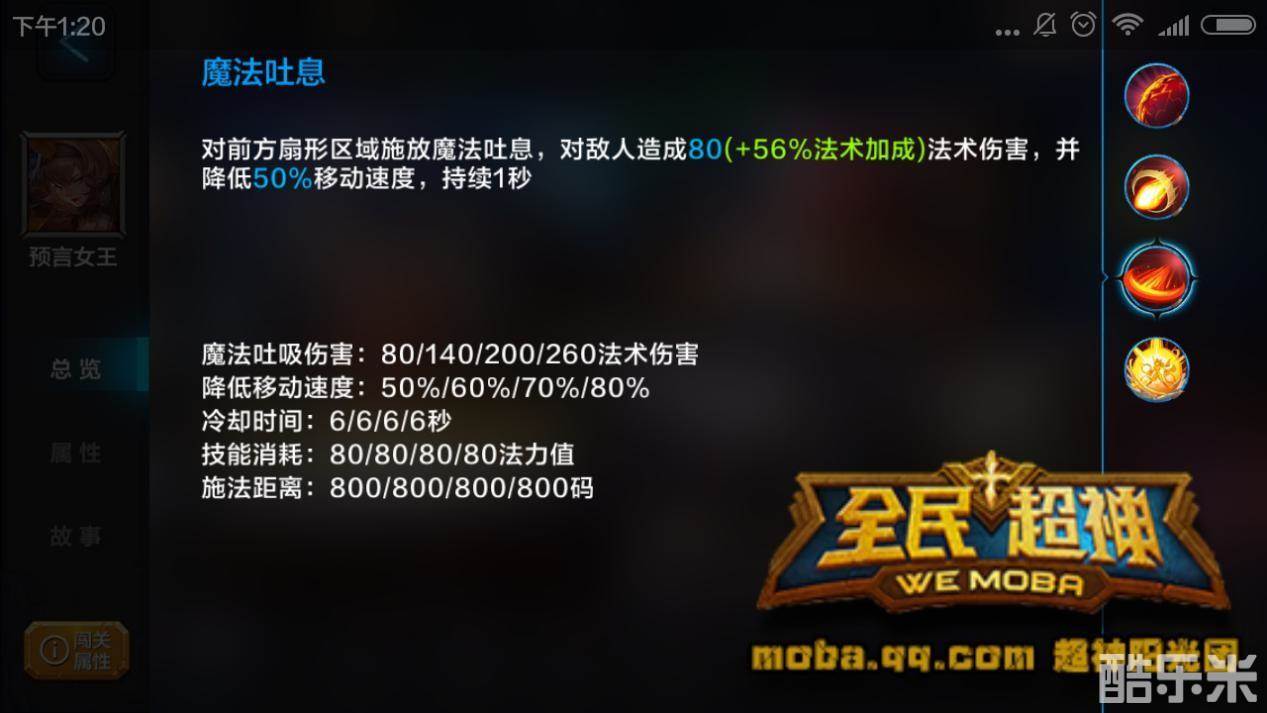 魔法吐息:对前方扇形区域释放魔法吐息,对敌人造成法术伤害,并大幅度减少移动速度
