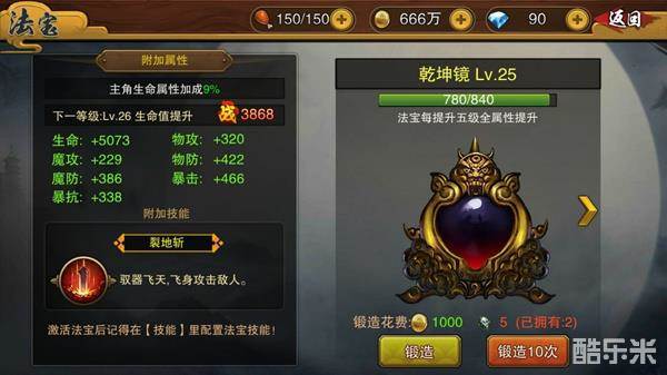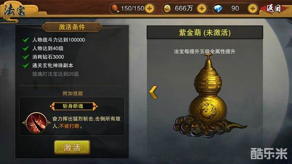 每个法宝附带一个技能哦,可以丰富你的连招,提升你的输出。