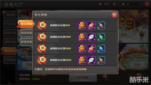 1.积分奖励:在战场中达到指定积分时会自动获得奖励。