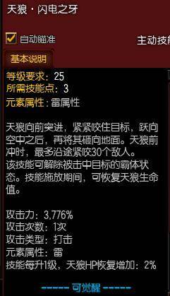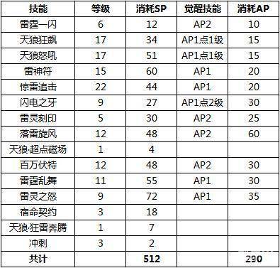 控狼。2个版本前颇有争议的一个技能,上次天狼改版后伤害大大滴增加,这次更新消耗sp每级3改成了2,所以没道理不点满。,AP看个人喜好,要么点AP1,一级或者2级均可。要么不点。Ap2狼出去又回来还怎么接雷追击啊- -~~