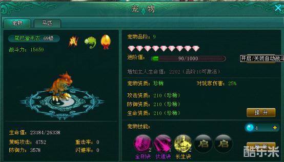 技能品质高低依然是 白色-蓝色-黄色-绿色-紫色。品质越高加成也就越高!宠物的提升和进阶想必不用多说了!