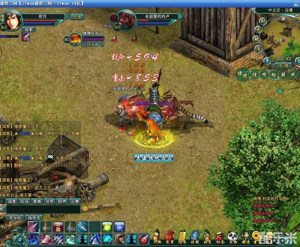 在打战马时候要注意战马师会有反伤!身边出现一个蓝色的反伤盾时,各位新手玩家要及时停止攻击哦!