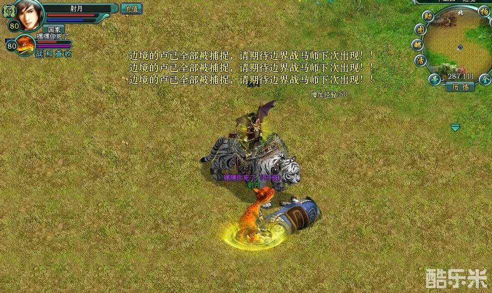 在战马师被打死的瞬间!身边会出现2匹的卢马!在中立区.边境还会随机出现2匹战马哦!