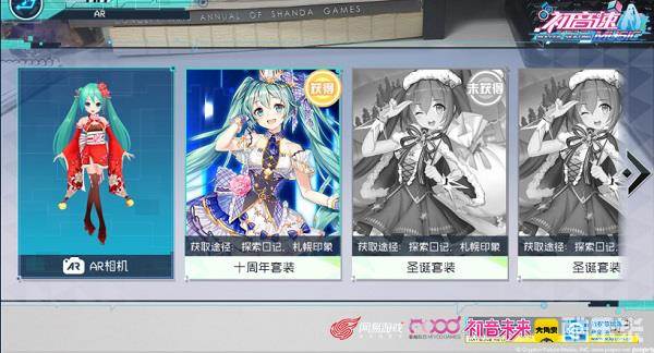 在新版本的《初音速》中,AR功能整合为了一个入口。玩家进入这个入口就可以进入AR模式,在这里不止可以开启AR相机,还可以查看AR套装。初音未来在现实世界的换装更为便捷。