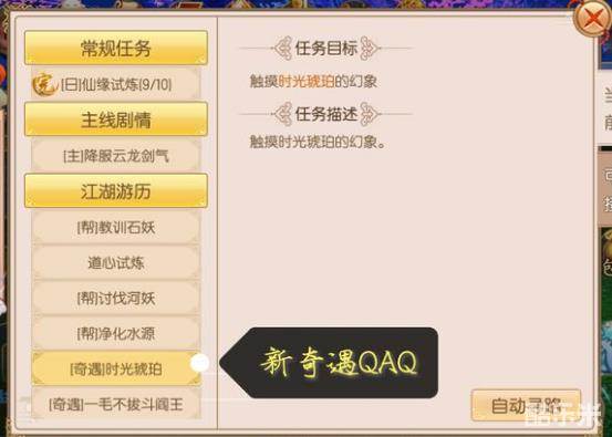 时光琥珀奇遇会在做华胥一梦奇遇后碰到,这个任务该怎么做呢?下面小编给大家介绍一下御剑情缘时光琥珀奇遇攻略。