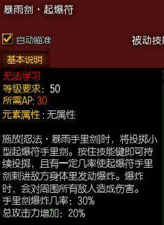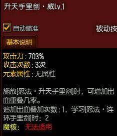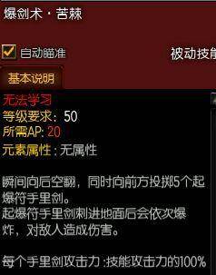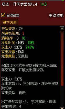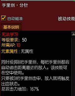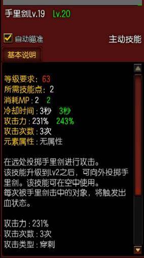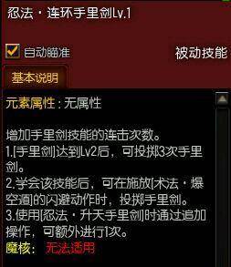 对于非霸体怪会使其浮空 但是对于霸体怪可以造成延缓的效果(就像一帧一帧的看动漫那样) 当然它最大的优点在于快去叠血 前面忘说了 如果点了手里剑2级以上以及这个技能 一定要点出被动技能 忍法连环手里剑( 就是最后那张图 )