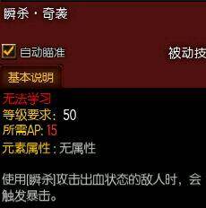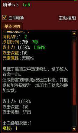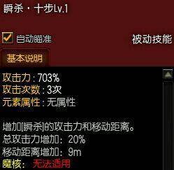 瞬杀:满级 2800%的伤害 全等级固定7S CD 是跑路突进的必备技