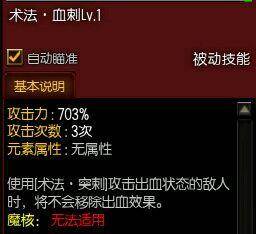 也就是说 最多可以一次打出28778.4%呐么多的伤害 外加让他失血过多晕3s 所以必须点满哦 觉醒的话一般都是点血刺的 神壕可以点诡刺反正都是秒。。。