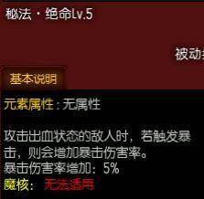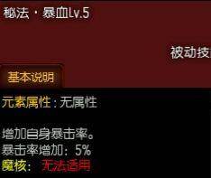 若攻击出血敌人暴击则加一定的爆击伤害率 1级加1%爆伤 一共5级 共加5%爆伤