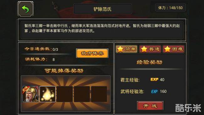 1) 进行战役需要消耗君主体力值,失败时不会扣除体力,也不会损失士兵