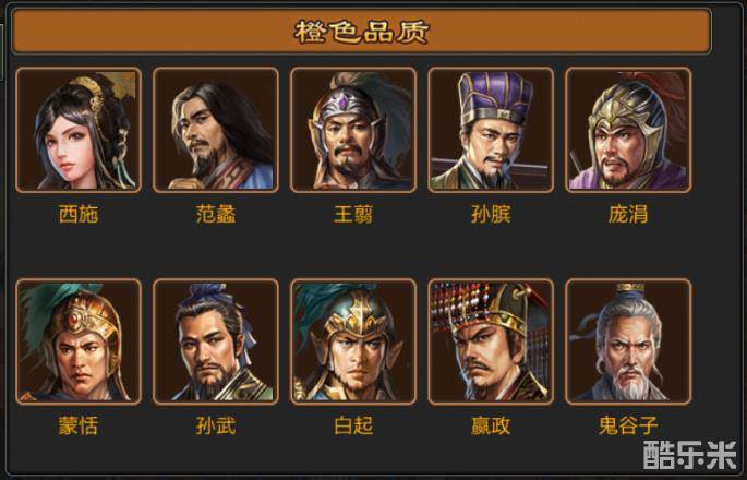《七雄争霸》中武将分为绿蓝紫橙4个品级,从绿到橙品级越来越高,品级越高成长越高,属性越高,同时品级不同,武将可近阶的上限也不同,高品级武将可以进行更多进阶。
