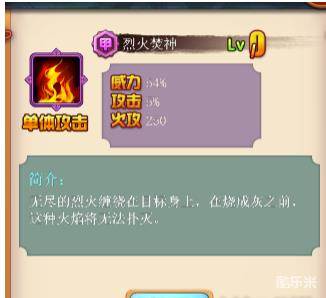 技能烈火焚神,54%威力,5%攻击,固定火上250.看起来伤害不错的,就是联系到之前的属性。有点脆这个角色。