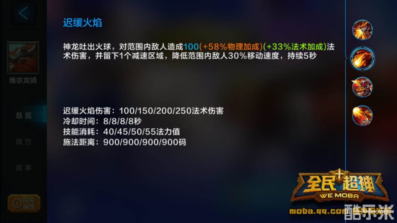 迟缓火焰:神龙吐出火球,造成AOE法术伤害,并留下减速区域。