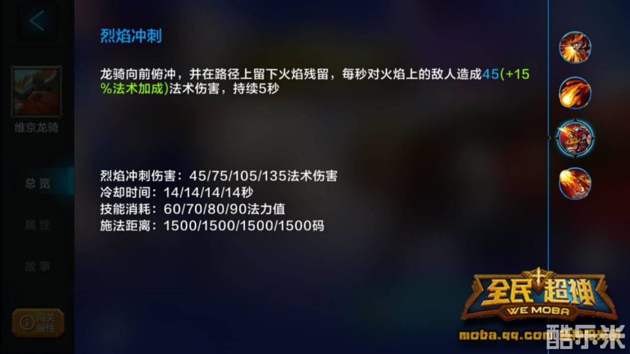 烈焰冲刺:龙骑向前俯冲,并在路径上留下火焰残留。