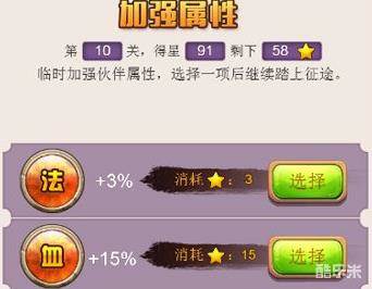 没过几次关卡,玩家都会得到一个强化自身属性的机会,根据玩家先前的通关情况,获取的星星数就是玩家强大自身的道具了。
