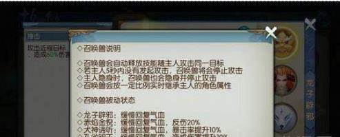 6.召唤兽大招等级跟人物主动技能灵犀相通等级一样,其他主动技能等级跟召唤兽等级一样,被动状态效果固定不随等级变化。