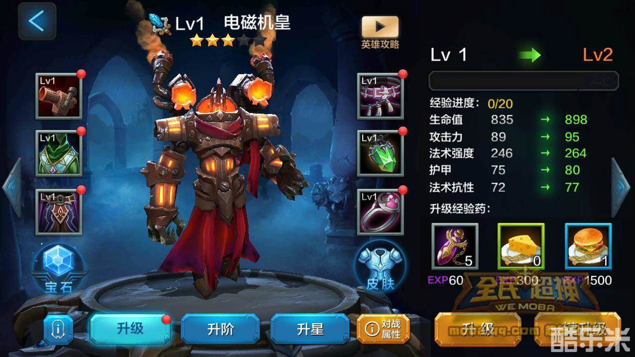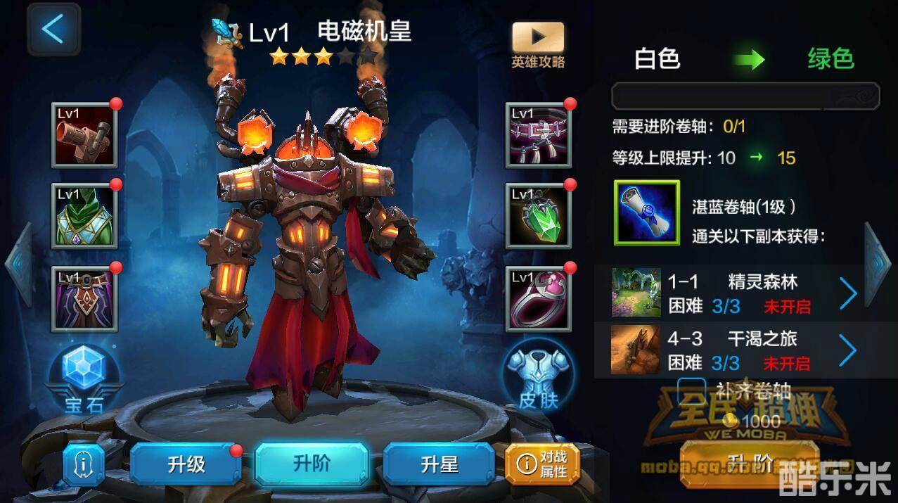 阶级方面,英雄进阶需要卷轴,电磁机皇属于法师英雄,需要不同等级的湛蓝卷轴。升阶卷轴可以通过刷困难闯关关卡随机获得,只要小伙伴们自己努力,升阶到紫2不是梦。