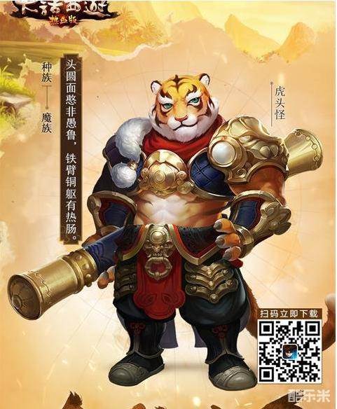 “头圆面憨非愚鲁,铁臂铜躯有热肠。醉笑随君八万场,飒沓流星步云间。”虎头怪历来在大话中都是人气超高的魔族角色,这次在热血版资料片中登场,依然有着圆乎乎的脑袋和毛茸茸的尾巴。虎头怪身着金光闪闪的精钢甲,手握碗口粗的铁棒,更显威武,而眼中空灵的气息又透出智慧的闪光。