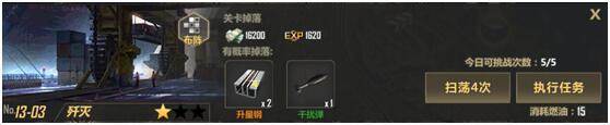 每个关卡每日可挑战次数为5次,每次消耗15点燃油,达到通关要求即可获得升星钢以及升星道具。